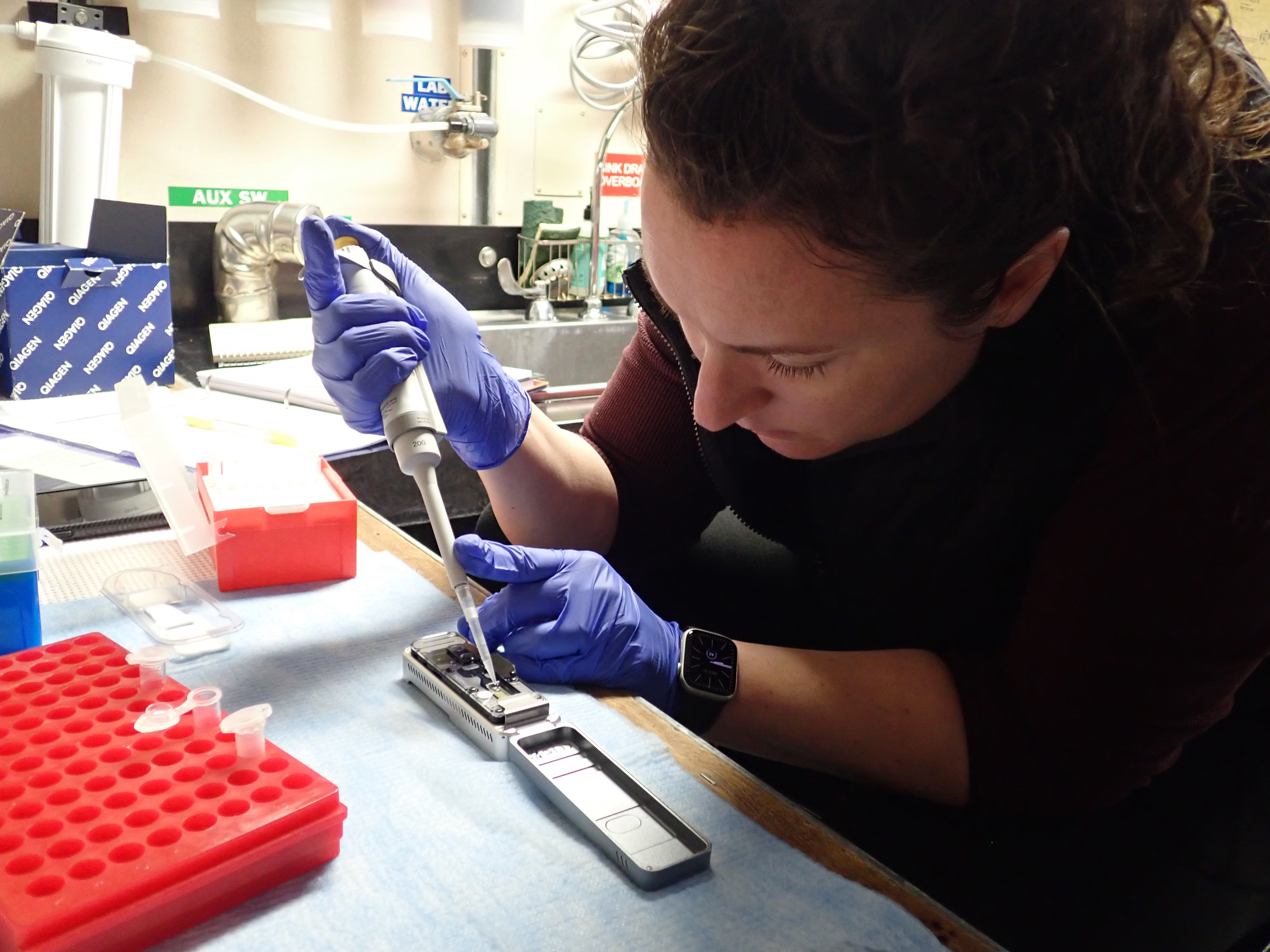 This expedition built on the team’s previous work in the region, with the goal of improving understanding of the diversity and distribution of these deep-ocean animals. To help achieve this goal, they used state-of-the-art acoustic sensing and sampling methods, including a variety of plankton net systems and a towed imaging system, with a focus on the waters around two seamounts near the edge of the U.S. Exclusive Economic Zone: Giacomini and Quinn.